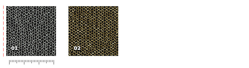 À armure bobbinet avec une petite maille, de dimensions moyennes proches de celles du tulle BCI - Cinecittà, mais très irrégulière, qui s'étire et se rétracte avec un certain degré d'élasticité.