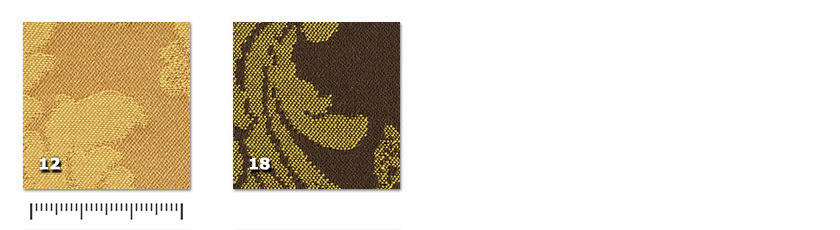 Il se caractérise par un effet positif / négatif, le motif damassé apparaît plus clair ou plus foncé que le fond selon le côté d'où il est vu.