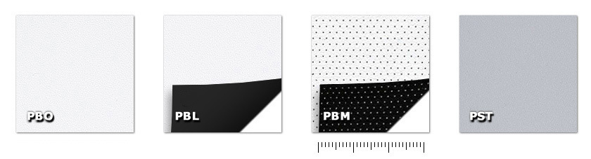 Écrans pour projection frontalePBO-BiancoOtticoPBL-BlackoutPBM-BlackoutMicroforatoPST-Stormy