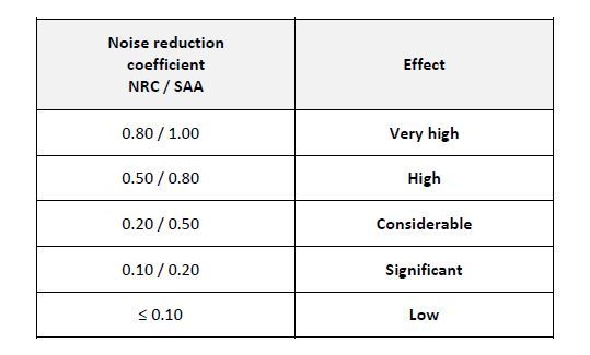 Coefficient de réduction du bruit de la moyenne d'absorption acoustique (SAA)
