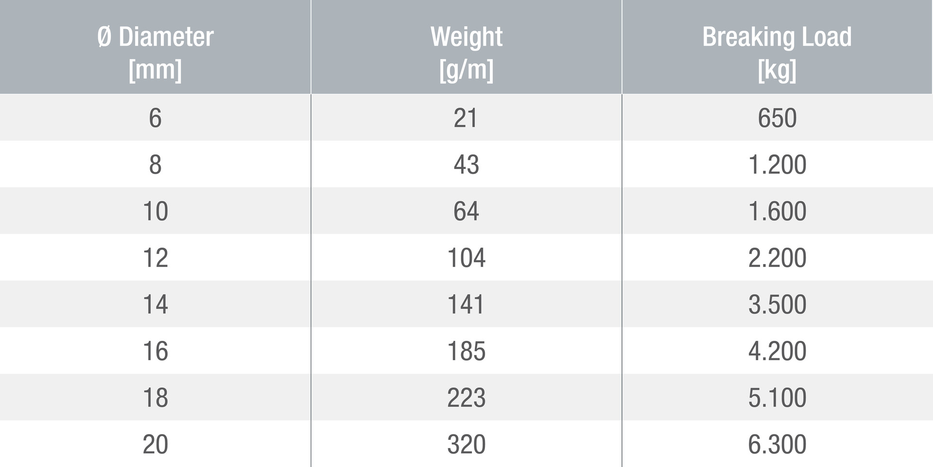 It is resistant to abrasion and external agents and it is available in various colours, thus facilitating the identification of each individual rope in fly facilities that use many hanging points.