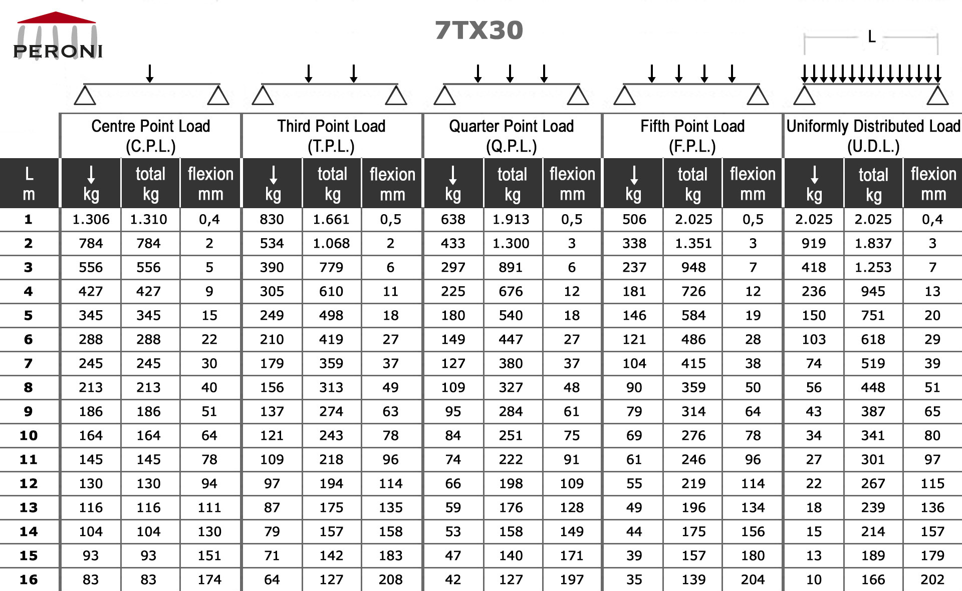 Таблица нагрузок составлена в соответствии со стандартом UNI ENV 1999-1-1 (Eurocode9).