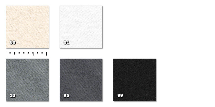dimout, that is, they reach their maximum in the black colour and decrease in the less dark colours, to the point that the lighter ones can be used as light diffusers (with a warm colour temperature for the natural colour and a cold one for the white), for example for the butterfly diffusers in movie sets.