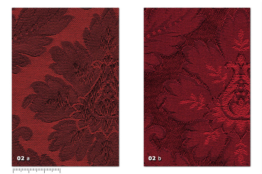 È caratterizzato da un effetto positivo / negativo, il motivo damascato appare più chiaro o più scuro dello sfondo a dipendere dal lato da cui lo si osserva.