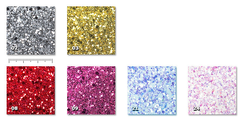 È costituito da un supporto in robusto tessuto di cotone con armatura saia sul quale sono incollati dei QGL - Glitter in poliestere riflettente di vario diametro.