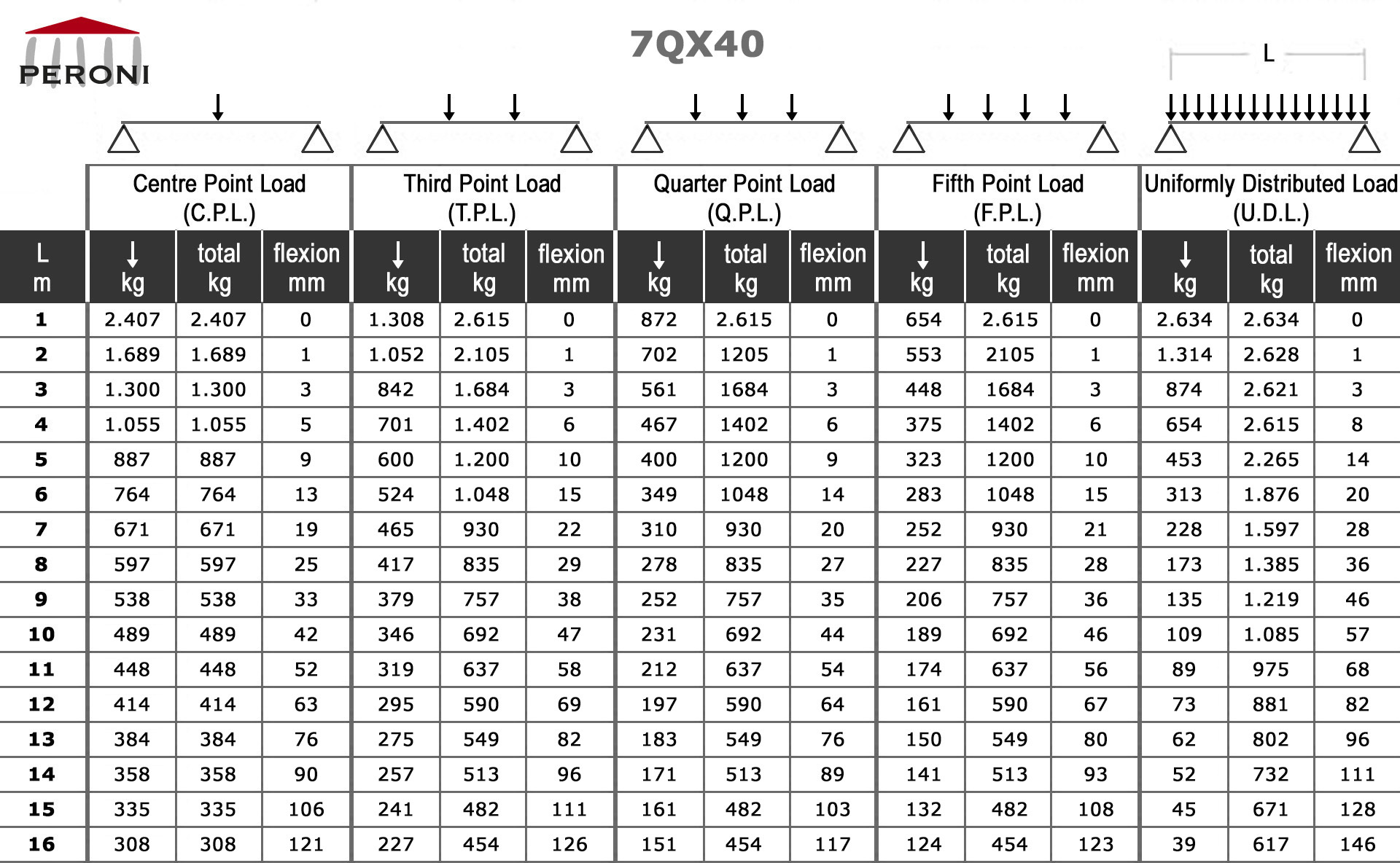 Tabella dei carichi dei tralicci lineari